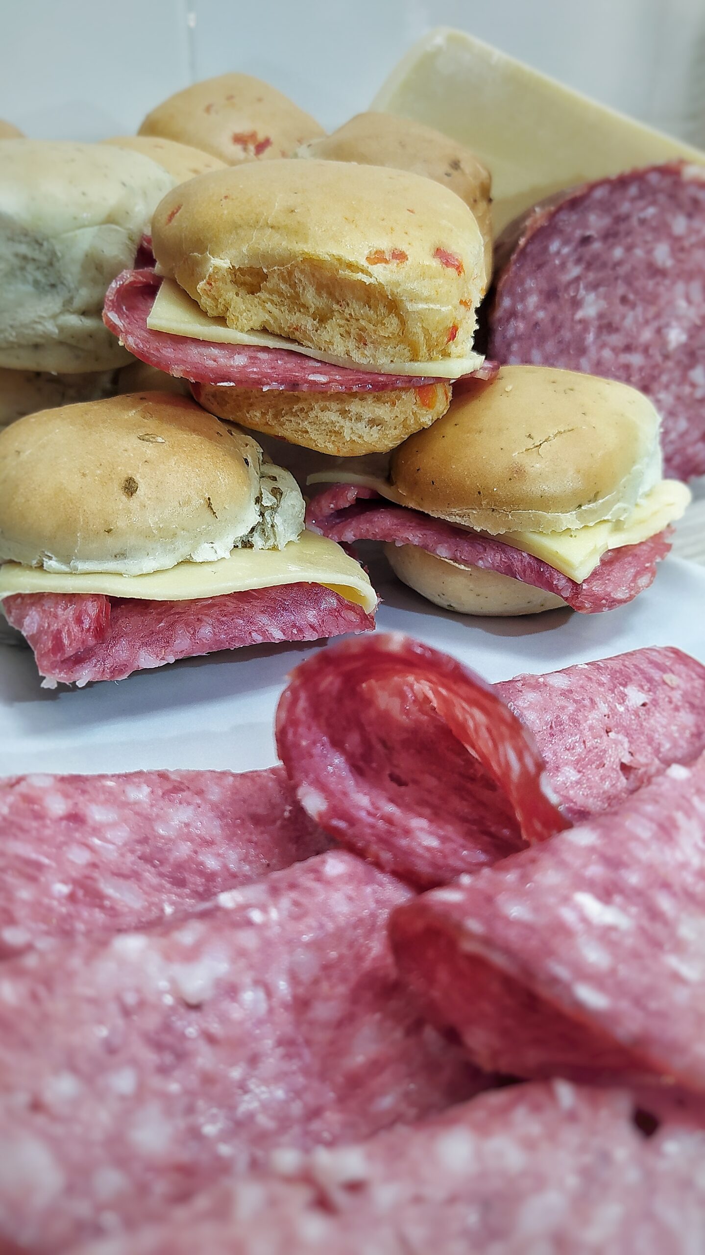 Pancitos saborizados rellenos con salame y queso.