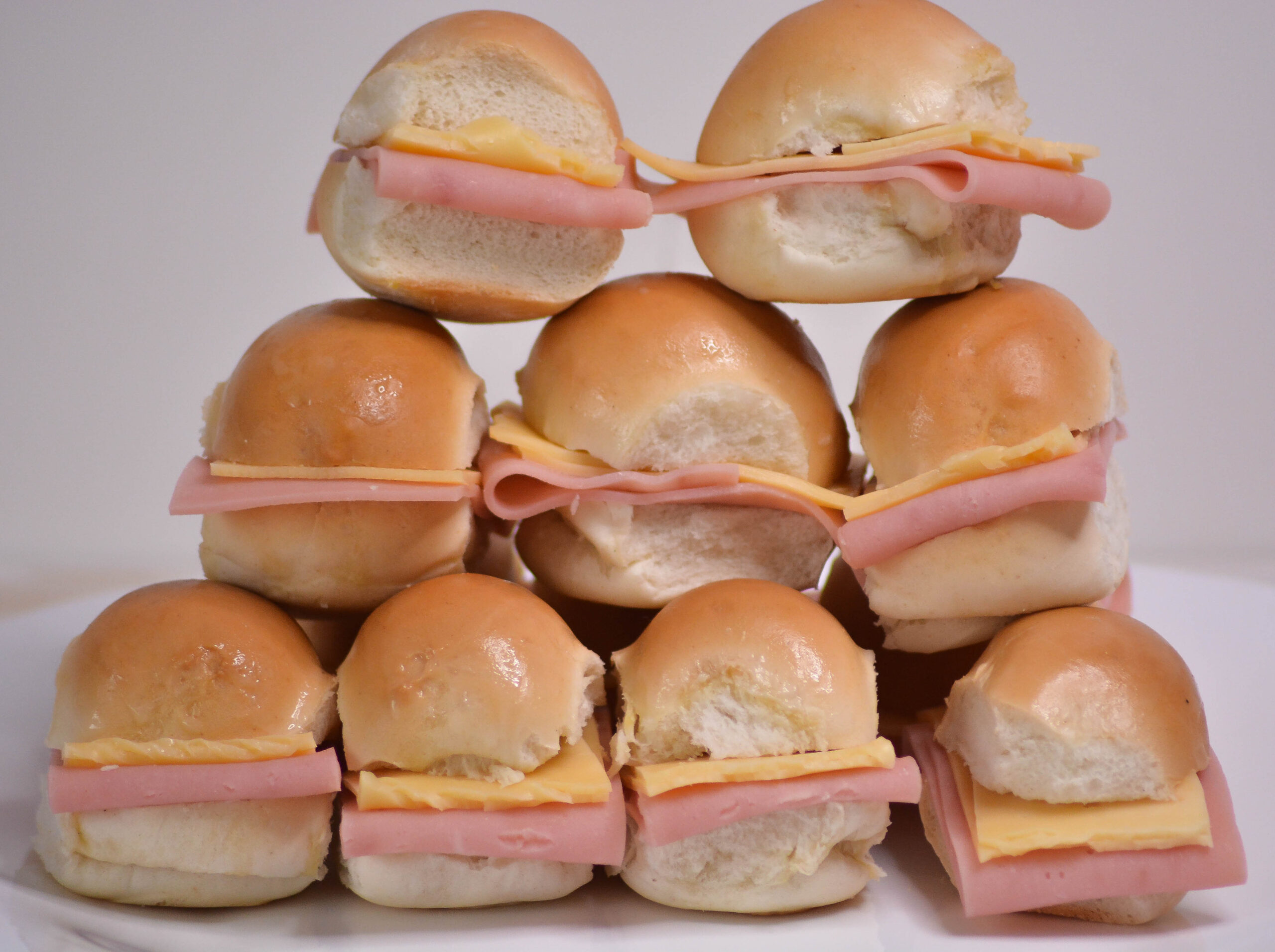 Pancitos de viena con jamón y queso o jamón crudo y queso.